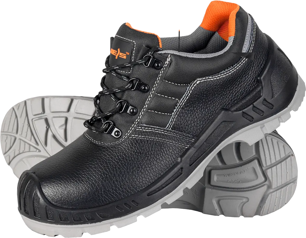 з коров'ячої шкіри туфлі з низьким вирізом, вище щиколотки. протиковзка, маслостійка, антистатична підошва з поліуретану подвійної щільності. амортизація під п'ятою багатошарова волоконна вставка, що захищає стопу від проколів з тиском 1100Н композитний носок, стійкий до ударів енергією 200 Дж і зминання до 15 кН. гумове покриття, що запобігає тертю носка взуття об землю Категорія S3 SRC відповідають вимогам стандартів EN20345 і EN20344